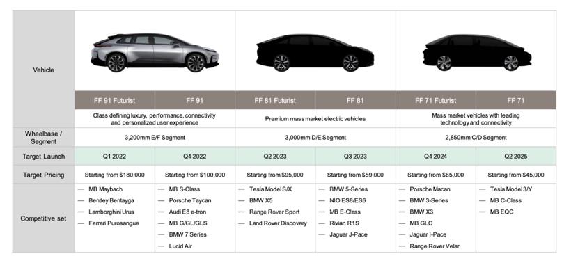 根据FF产品计划,继FF 91之后,第二款产品FF 81的两个版本将于2023年Q2、Q3上市,之后在2024年Q4和2025年Q2,将继续推出FF 71的两个版本。