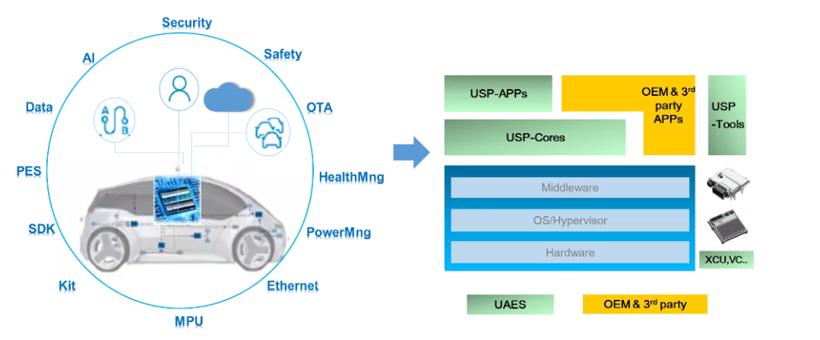 不仅如此,随着软件定义汽车趋势下软件的复杂程度和创新性要求不断增加,如何高效、快捷地开发有创意的软件产品也成了几乎所有开发者不得不面对的问题。对此联合汽车电子将在该领域积累的一系列开发工具、方法以及丰富的功能中间件,通过USP软件开发平台