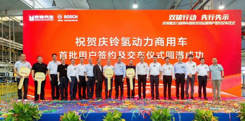 博世氢动力系统(重庆)有限公司和庆铃汽车股份有限公司今日在重庆宣布,首批搭载博世氢动力系统的商用车正式交付,并投入使用。来自重庆市经信委、庆铃汽车(集团)有限公司和博世动力总成事业部的领导以及民生物流等客户代表共同出席了此次交付仪式。
