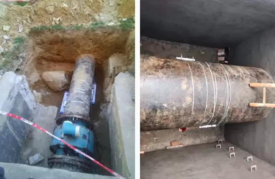 图:户外,老旧管道,导轨结构实现局促空间内便捷安装