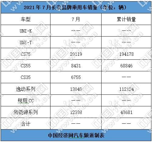 分车型来看,长安乘用车品牌旗下的CS75、CS55、CS35、逸动系列、新能源系列,在7月的销量分别为20119辆、8431辆、6755辆、13049辆、12398辆。长安本月依然没有公布UNI-K、UNI-T以及锐程CC在7月的销量。不过,长安公布了UNI-K和UNI-T在7月的合计销量(10135辆)。