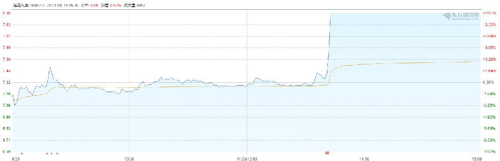 8月16日午后海马汽车(000572)股价直线涨停(图片来源:东方财富)
