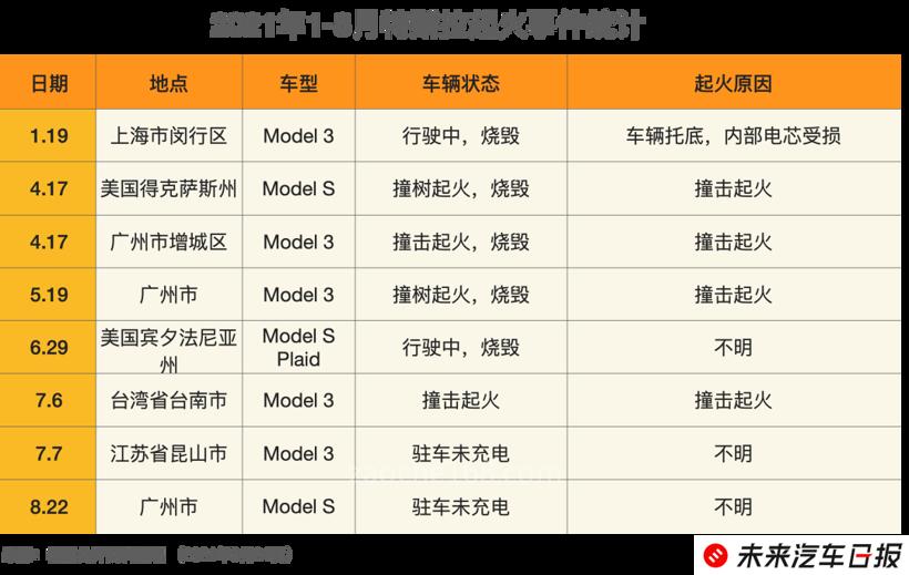 在2021年,除静止状态起火外,特斯拉还因碰撞导致起火现象。