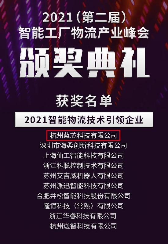 近日,2021智能工厂物流产业峰会在宁波慈溪•杭州湾世纪金源大酒店圆满落幕,蓝芯科技以领先的视觉导航技术斩获“2021智能物流技术引领企业”奖。
