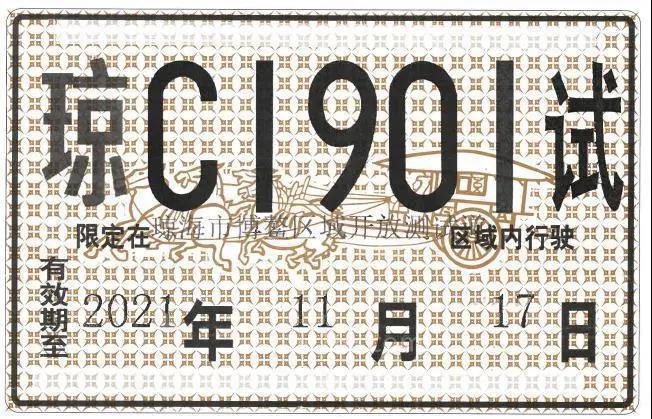 海南首张自动驾驶公开道路测试牌照,图片来源:中国一汽