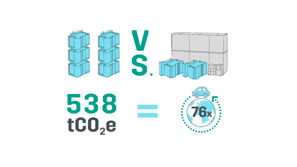 这些数据来源于Fastems集成的典型尺寸的铣床在传统生产方式与采用自动化解决方案所产生的碳排量的差额净值。更令人欣喜的是,自动化的投资对空间的节省,也使得在供暖和空调的能源使用上每年大约可节省34 tCO2e(每吨二氧化碳当量)的碳排量。