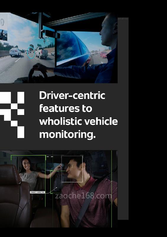 该系统可使用基于摄像头和非摄像头的组件来监控驾驶员、乘客和整个车厢,包括内部空气质量。该核心系统使用后视镜集成摄像头提供基本的DMS(驾驶员监控系统)功能,可以分析驾驶员的头部姿势、眼睛注视和其他基于视觉的指标,以确定驾驶员在半自动驾驶汽车中是否注意力分散、困倦和是否准备好恢复手动控制。该系统还可进行扩展以监控整个车厢,跟踪乘客及其行为,以及车辆内部的物体。此外,该系统甚至可以将车辆变成移动通信中心,用于拨打视频电话、召开会议或在车内自拍。