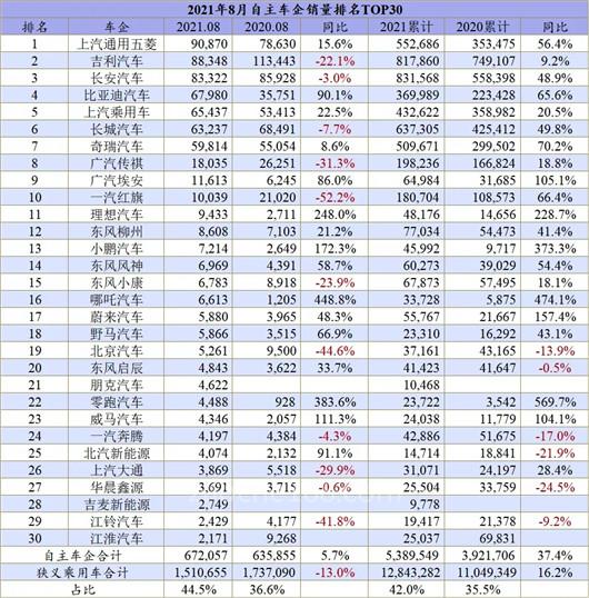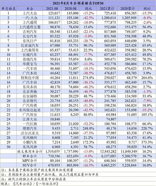 作为最受关注和最具有典型代表的前十强车企,8月的车企十强确实出现了较大变化。