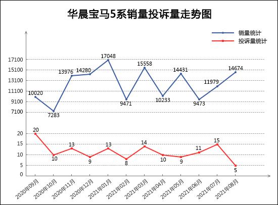 伴随着销量“两连涨”,华晨宝马5系的月销量创造了近五个月来的新高,市场表现重回正轨。据乘联会数据显示,今年1-8月华晨宝马5系累计销量125,192辆,较去年同期上涨40.7%,进一步拉近了与奥迪A6L之间的差距,暂居豪华中大型车排行榜第二位。从其近一年来销量投诉量走势图可以看出,宝马5系销量走势起伏较大,整体呈现出震荡上行的趋势。反观其月投诉走势,近一年来基本走势较为稳定,8月份投诉量降至近一年来的最低点,短期质量口碑呈现出向好趋势。随着8月份华晨宝马5系年度改款车型的上市,配置上的升级也将带动车型竞争力的提升,在接下来的四个月里,能否逆袭奥迪A6L夺取豪华中大型车年度销冠,让我们拭目以待。