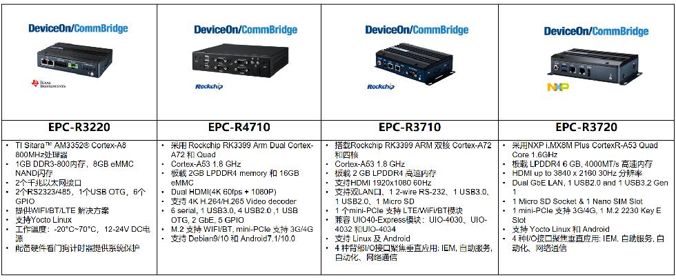 研华RISC/Arm 边缘智能网关适配CommBridge产品型号