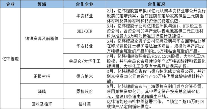 来看2021年以来,宁德时代、国轩高科、亿纬锂能等头部动力电池企业的上游资源的加速布局: