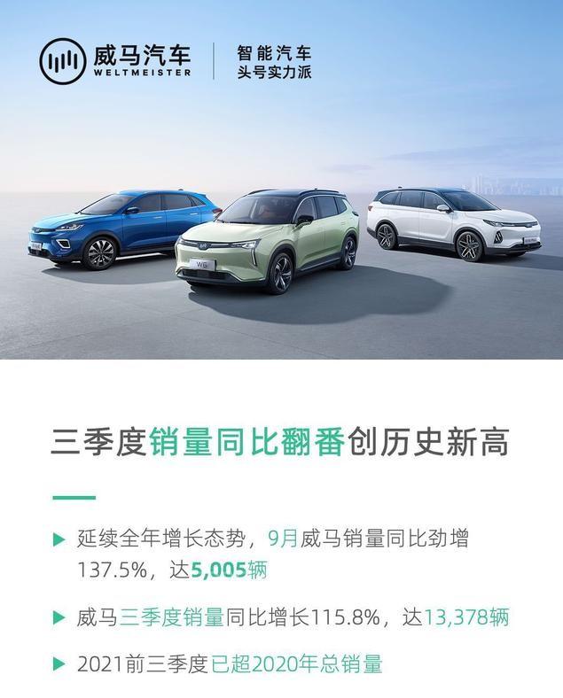 说实话,威马汽车一开始还是保持了强劲的势头,可惜后来一直不温不火。10月1日,威马汽车发布销量报告:9月威马汽车销量为5005辆,同比增长137.5%。第三季度威马汽车销量达13378辆,同比增长115.8%,创单季销量历史新高;前9个月累计销量29043辆,超过去年全年销量总和的22495辆。对于国内新能源汽车的前景,沈晖曾反复强调,中国家庭拥有车辆基数低、潜力大,对新能源汽车和智能体验接受度高。15万至25万元的价格区间是潜力最大的必争之地。