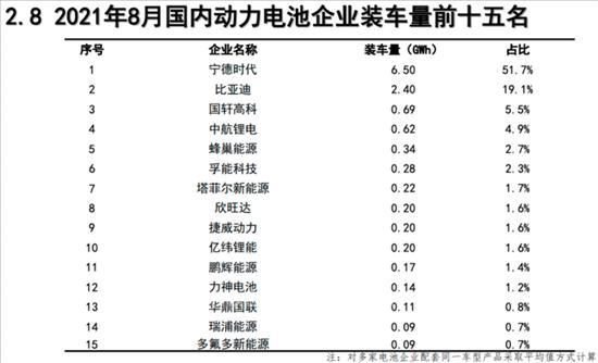 比亚迪正在奋力追赶松下,8月装机量2.5GWh,环比上涨19%,与松下的差距越来越小。其装机量的环比上涨,得益于比亚迪车型的热卖,如比亚迪汉及DM-i车型均功不可没。