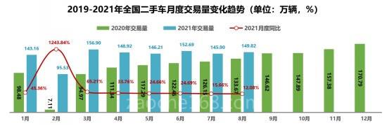 流通协会预计9月二手车交易规模在160万辆左右,同比增长9%;2021年全年二手车交易量将突破1600万辆,超过2019年的水平,增幅在12%以上。