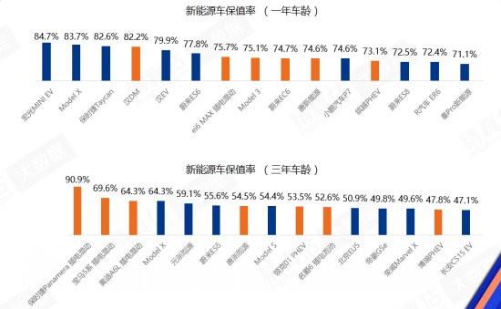9月,宏光MINI EV一年保值率冲到首位,为84.7%,汉DM和汉EV名次也有所上涨。另外,作为新品牌R汽车ER6,上市一年保值率即进top15,达到72.4%,说明其全新的定位策略已被用户快速认可。