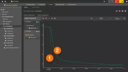在具体案例中,可监测入口和出口的当前电导率差异。若两者差异过大,现场工程师将收到警告或警报消息。