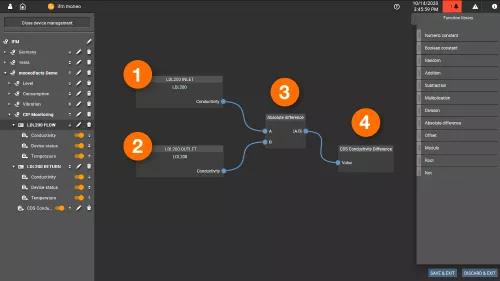 此外,可以通过moneo将过程值关联起来并用于计算。在具体的案例中,计算值可以用于快速检测流入和流出介质的电导率差异。