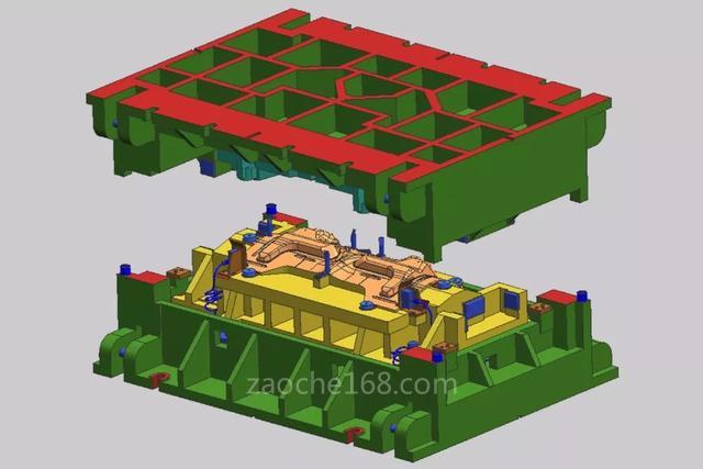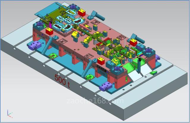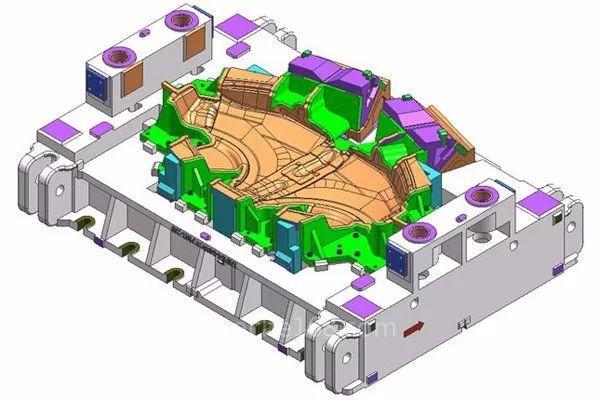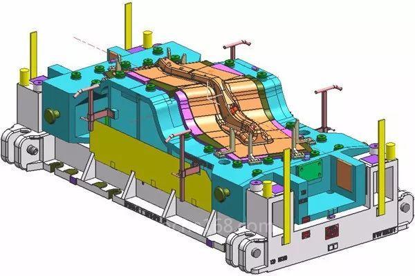 7、设计氮气弹簧时,根据CAE分析的压力来设计,不要设计过大的氮气弹簧,防止产品破裂。通常情况是:压力小,产品起皱,压力大,产品破裂。解决产品起皱,可以采用局部增加拉延筋的方法,先用拉延筋固定位片材,再拉伸,来减少起皱