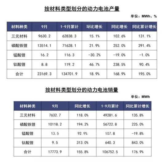 销量方面,2021年9月,三元电池销售7.6GWh,同比增长118.0%,占总销量42.9%;磷酸铁锂电池销售10.1GWh,同比增长194.2%,占总销量56.9%。