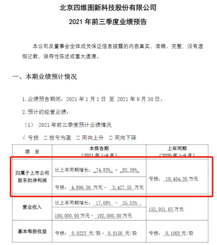 近日,四维图新发布2021年前三季度业绩预告称,公司前三季度预计实现营收18亿元-19.2亿元,较上年同期增长17.68%-25.53%,归属于上市公司股东的净利润预计亏损0.49亿元-0.34亿元,同比大幅收窄74.83%-82.38%。