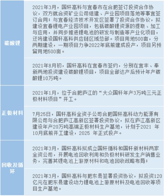 除锂电设备的规模招标外,国轩高科已经在产业链上游做了系列前瞻布局,保障材料供应并对冲原材料价格波动。