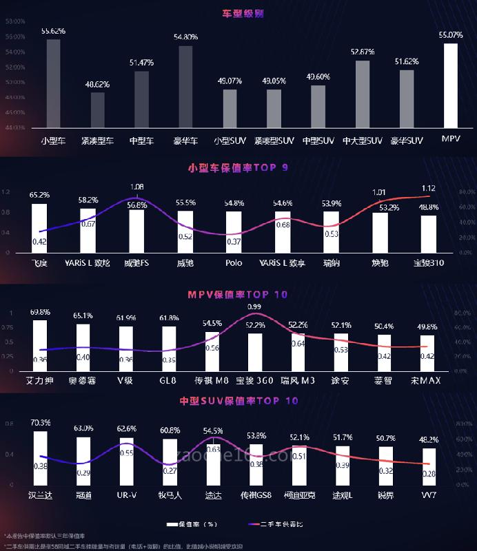 在对二手车市场的交易区域和成交均价等基本情况有一定的了解之后,接下来进入大家最为关心的保值率进行介绍。
