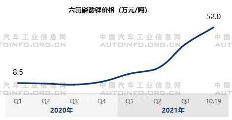 六氟磷酸锂为目前主流锂离子电池电解液原料,在电解液中的成本占比约为40%,同样受下游新能源汽车动力电池需求旺盛和锂资源供应紧张的影响,六氟磷酸锂价格持续上涨。