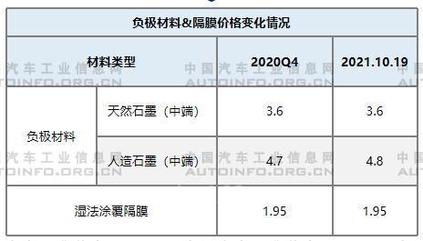相对而言,隔膜价格相对平稳,负极材料价格变动也较小。