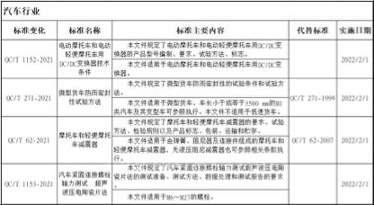本次公告共有9项汽车行业标准公布,包括《微型货车防雨密封性试验方法》、《汽车紧固连接螺栓轴力测试 超声波压电陶瓷片法》、《汽车微电机用换向器》、《汽车用USB功率电源适配器》、《汽车用蜂鸣器》、《汽车材料中六价铬的检测方法》、《车用动力电池回收利用、单体拆解技术规范》等,根据公告,这批汽车行业相关的行业标准全部将从2022年2月1日起实施。