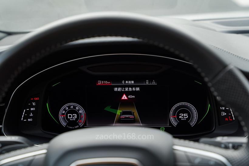 奥迪危险信息提示(LHI)和危险信息警告(LHW)系统通过车载传感器来监测危险状况,如低能见度、事故、湿滑道路、故障车辆、前车紧急制动及紧急车辆等。传感器可通过V2N(车云互联)和V2V(车车直连)进行实时网联和相关车辆间的预警通讯。车辆的人机交互界面以及虚拟座舱屏幕上会弹出提示信息,提醒驾驶者注意视线外的道路情况,以提前采取措施。