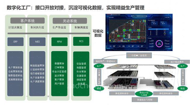 目前灵动科技在新能源和传统汽车等制造业中,基于对行业内客户需求的理解,可将RPM业务系统与客户MES、系统实现接口打通,从而实现从设备管理、订单管理到生产管理的一体化“数字化工厂“解决方案,客户可以看板形式阅读可视化数据,从而实现物流计划与调度同步的精益生产管理,提升工厂生产效率,目前灵动在欣旺达等汽车行业龙头企业客户现场实现落地,后续灵动将更多完善数据库,打造数字孪生的车间生产新体验。