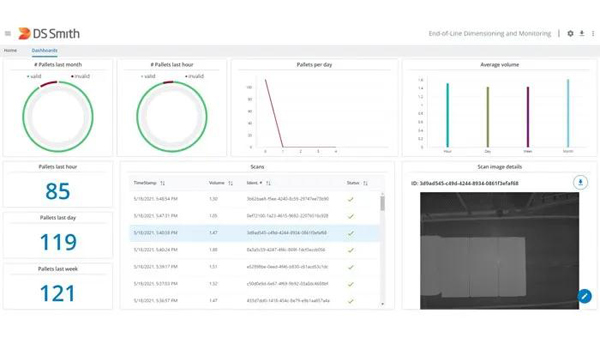 DS Smith设计并提供各类包装解决方案用以满足客户的供应链要求,并通过定制包装来改善终端客户的品牌体验。这给DS Smith带来了一个重大挑战,因为他们需要设计、处理、管理大量定制包,并向不同地点的终端客户和仓库运送。在包装生产过程的最终环节(文中称为生产线末端),需要通过测量托盘包装产品的尺寸、体积和数量来精确地确定生产线的产量,这些数据是定制和优化仓库和货运流程并确保最有效地利用可用空间的关键。