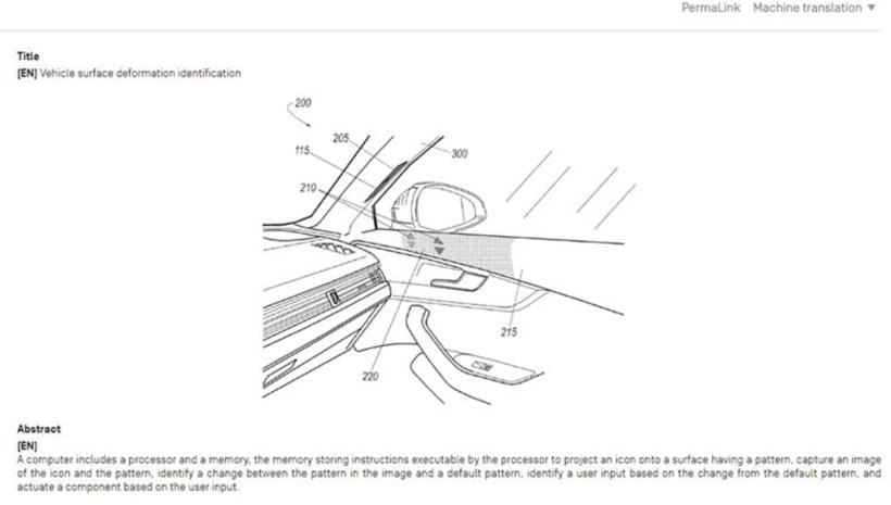 该项专利意味着马自达设想了一种投影仪,能够在表面上展示一个全息图像。当用户将手指放在该虚拟“按钮”上时,该投影仪会利用一种传感器来探测投影形状的变化,以表示用户输入情况。