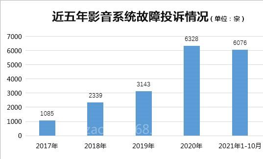 据数据显示,近五年与车载OS系统相关的影音系统故障投诉呈高速增长态势。2021年前十月影音系统故障的投诉量已经超过6000宗,是2017年全年总投诉量的4.6倍,其中投诉多集中在“中控屏卡顿”、“中控屏死机黑屏”以及“倒车影像失灵”等问题上。