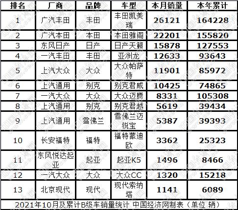 合资B级车普通品牌中,日系车再度爆发,既9月斩获细分市场前三名之后,10月更是包揽了前四名,纵观最近五年多的市场行情,这一情况可谓罕见,凯美瑞、雅阁、天籁和亚洲龙的累计销量同样很可观。