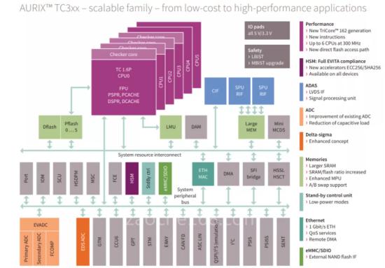 · 6 个 TriCore™内核 以 300 MHz 运行(带有 4 个额外的检查器内核,可提供 4000 DMIPS)