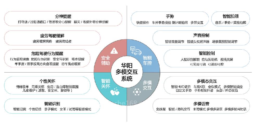 比如ADAYO华阳最新的多模态交互系统,基于高算力AI芯片,通过视觉、听觉、触觉、多模前融合、多模后融合等识别技术,能够实现4大类、70+人机交互场景,包括语音+手势开车窗或空调、可见即可说、上车问候、儿童哭闹安抚、声音控制、人脸启动发动机、视线亮屏、驾驶员行为监控和危险行为提醒等。