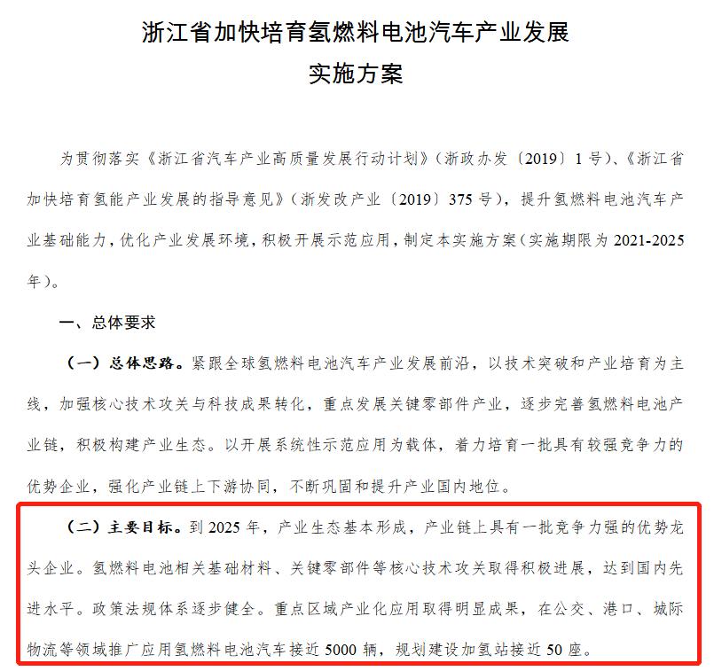 《浙江省加快培育氢燃料电池汽车产业发展实施方案》部分内容;兰溪市政府官网