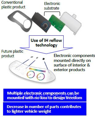 Wonder Future Corporation成立于2013年,总部位于日本东京,擅长于电子元件安装技术,具有能够同时焊接多个点的独创感应加热(IH reflow)技术(仅为0.2毫米)。该技术有望用于在塑料等低耐热性材料上高效安装电子元件,而低耐热性材料是丰田合成众多主要产品的主要材料。IH reflow技术可用于内外饰产品,如传统塑料产品、电子基板和未来塑料,以及将电子元件直接安装在内外饰产品表面上。因此制造商可添加多项电子
