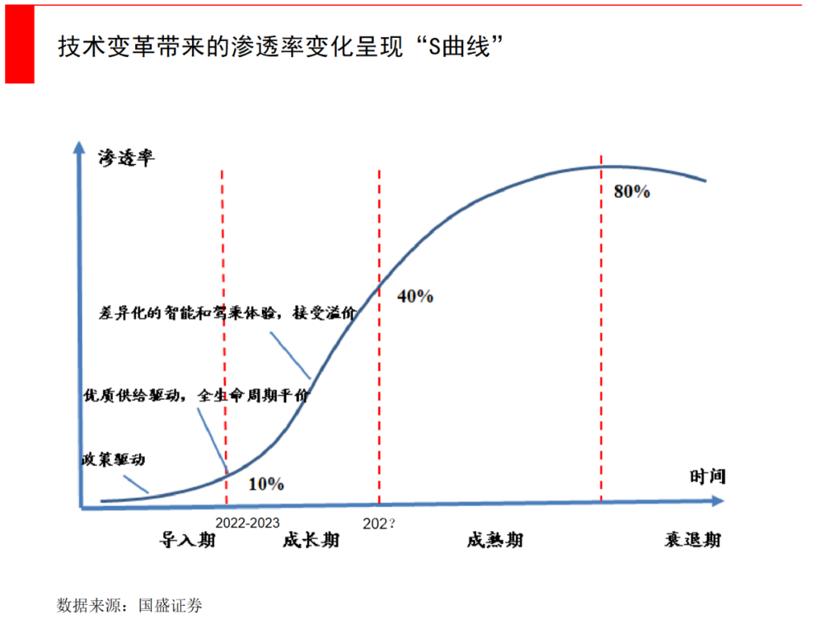 中汽协数据显示,10月中国新能源市场渗透率已经达到16.4%,新能源车正进入高速增长的新周期。按照新兴产业S曲线发展规律,当新产品的占有率达到10%-15%,行业将进入指数级增长阶段。新能源汽车市场,正处在“鏖战前夜”。