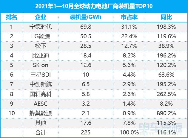 前10月:宁德时代独占鳌头,蜂巢增幅890.2%