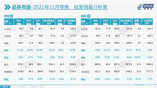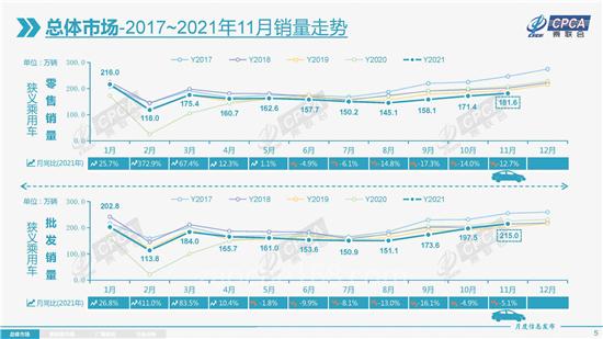 但国内乘用车市场仍远未恢复元气,11月,乘用车销量同比下滑达12.7%,相较2019年也有6%的下滑,迎来弱势“六连跌”。崔东树分析,“进入11月中下旬,国内疫情又呈现反复、散发的特点,对消费者进店量造成较大影响;同时,目前市场消费需求增长乏力,对中低端走量车型的销售不利;此外,缺芯带来的冲击也仍未完全消退,紧俏车型在终端市场仍然一车难求;还有,面对即将到来的年底销售小高潮,部分经销商也采取了‘囤货’和回收优惠力度的方式来应对。”