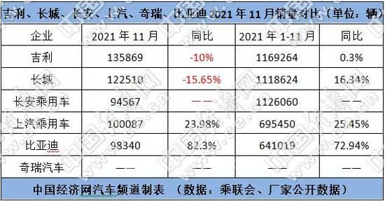 快速崛起的长城、吉利,正以全新阵营提速全球市场布局;得益于全球业务的快速增长和中国市场的稳健表现,两者的销量持续保持领先。数据显示,11月,长城、吉利的销量均突破10万辆;1-11月的累计销量均突破100万辆。