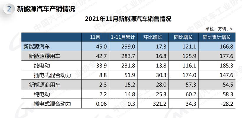 今年1-11月中,我国新能源汽车产销量分别达到302.3万辆和299.0万辆,同比增长均为1.7倍。市场渗透率达到 12.7%,高于前10月。