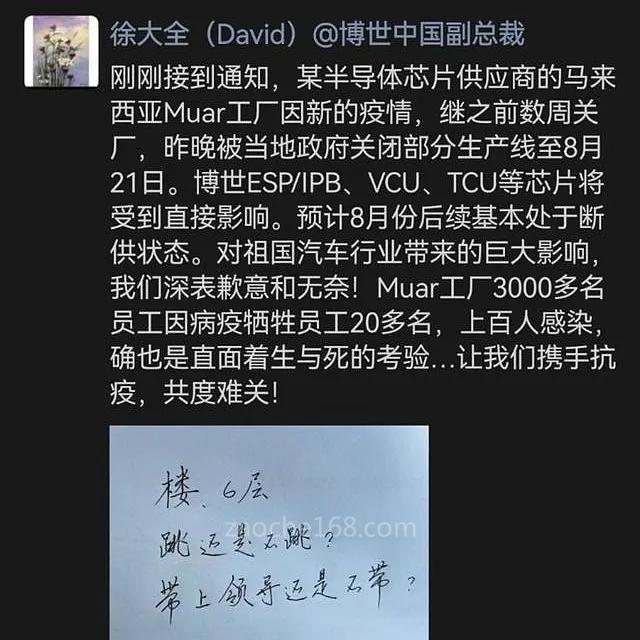 “6层,跳还是不跳?带上领导还是不带?”这是今年汽车供应链的一则著名段子,来自博世中国执行副总裁徐大全的朋友圈。