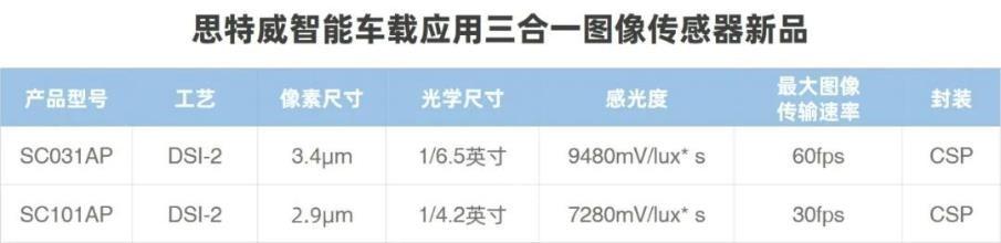 首次推出基于DSI-2技术面向智能行车影像应用的图像传感器新品——SC031AP与SC101AP,力求以优质成像性能赋能车载影像应用。