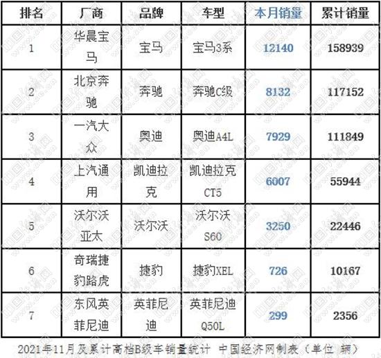 聚焦到今年的合资B级车市场,高档车延续了此前的波澜不惊,宝马3系全年夺冠已毫无悬念,奔驰C级在全新换代之后,快速进入状态,连续两个月销量超过奥迪A4L,争夺亚军的戏码还在继续。凯迪拉克CT5全年平稳,已明显甩出沃尔沃、捷豹和英菲尼迪“几条街”。