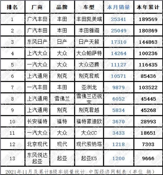 在合资B级车普通品牌中,凯美瑞和雅阁的冠军之争一直是最大看点。从前11个月的销量数据来看,凯美瑞积累了一定优势,领先雅阁约9千辆,不出意外的话,夺冠在情理之中。但考虑到雅阁常常在年底有“惊人之举”,加之已连续两年夺冠,“心气”还是有的。