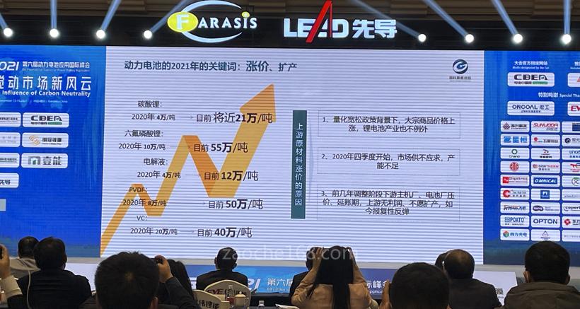 中国工程院院士、北京理工大学教授、中国化学与物理电源行业协会动力电池应用分会专家委员会主任委员吴锋透露,“今年以来,我国动力锂电池各种材料价格水涨船高,碳酸锂、氢氧化锂、正极、负极、隔膜、电解液、六氟磷酸锂等价格普遍上涨,有的材料涨幅竟然高达五、六倍。”