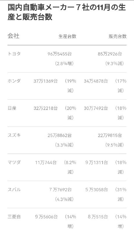 横向对比,同属东瀛阵营的日产在11月产量受半导体短缺影响,同比下降20%,至约32万辆,继10月后持续下滑两位数。本田的生产也受到芯片供给影响,同比下降19%,约为37万辆。